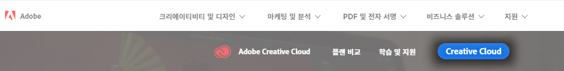그중에서 보시는 바와 같이 파란색 버튼인 Creative Cloud라는 메뉴를 클릭해줍니다.