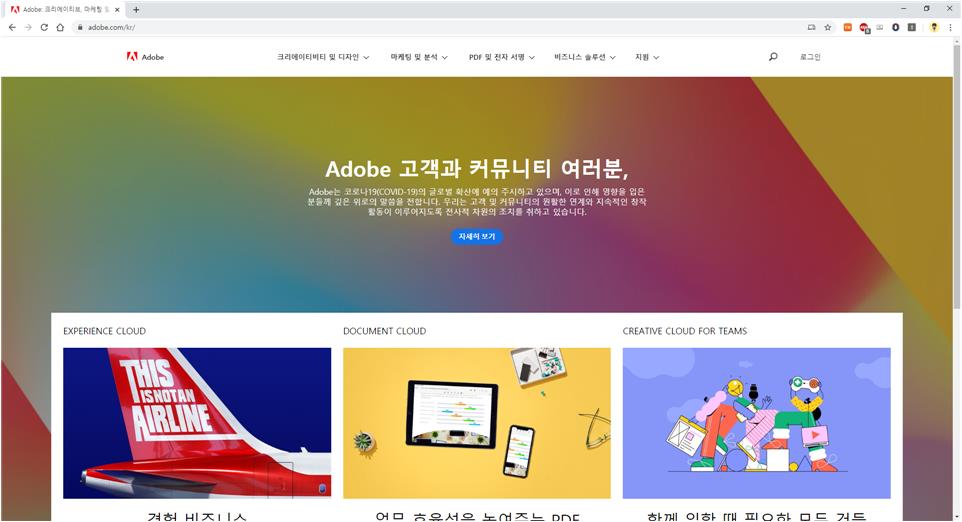 우선은 위의 사이트 링크를 클릭해서 접속해주세요. 포토샵은 어도비사의 프로그램이라 어도비로 접속해주시면 됩니다.