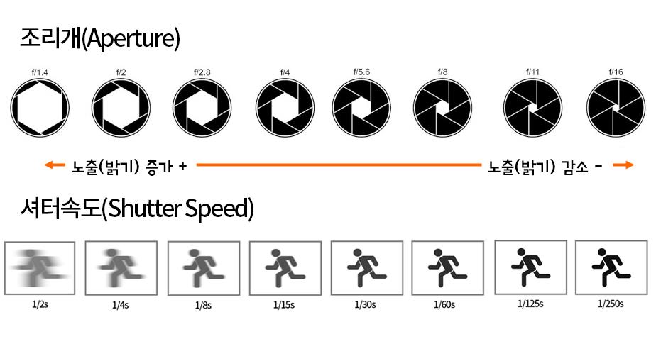 조리개 수치에 따라서 노출, 즉 밝기가 결정되는 것이지요.