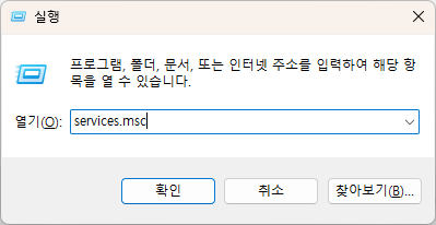 - Windows + R → services.msc 입력 후 엔터.