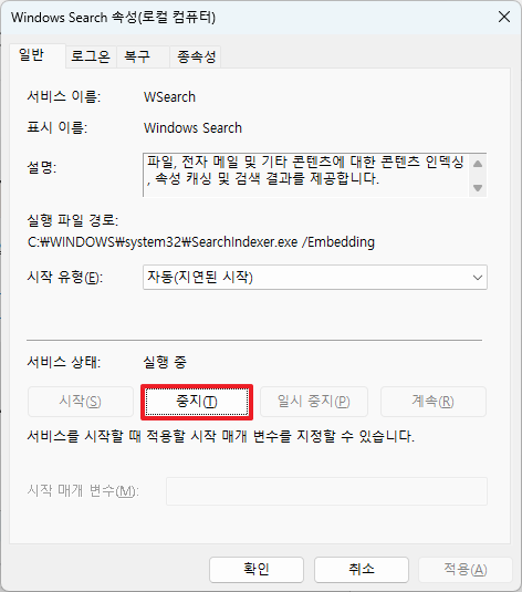 🔹 Windows 검색 인덱싱 비활성화