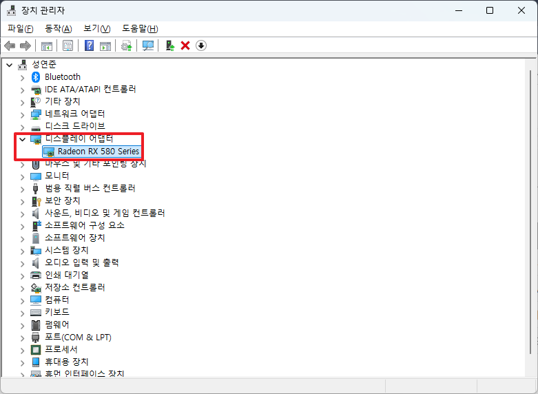 - Windows + X → "장치 관리자" → "디스플레이 어댑터"에서 그래픽 카드 모델 확인 가능.