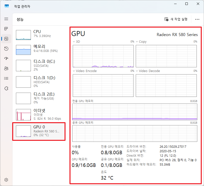 ✅ 작업 관리자로 그래픽 카드 확인하기